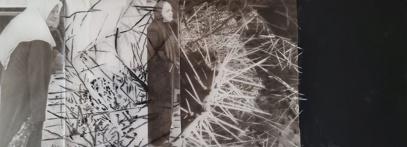 2024; Wohin? VI; 60 x 80 cm; Foto Transparentpapier, Karton, Ölfarbe;