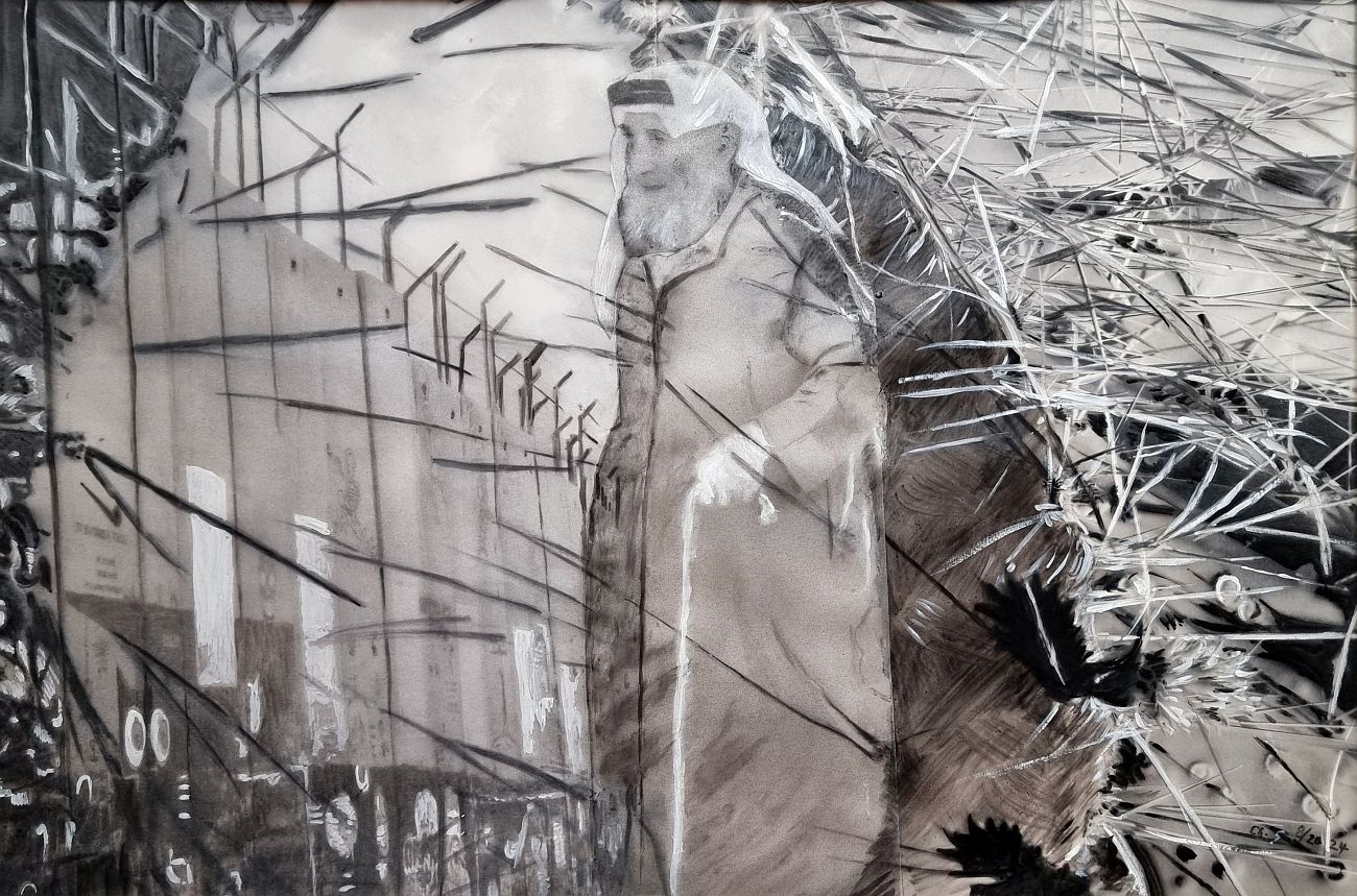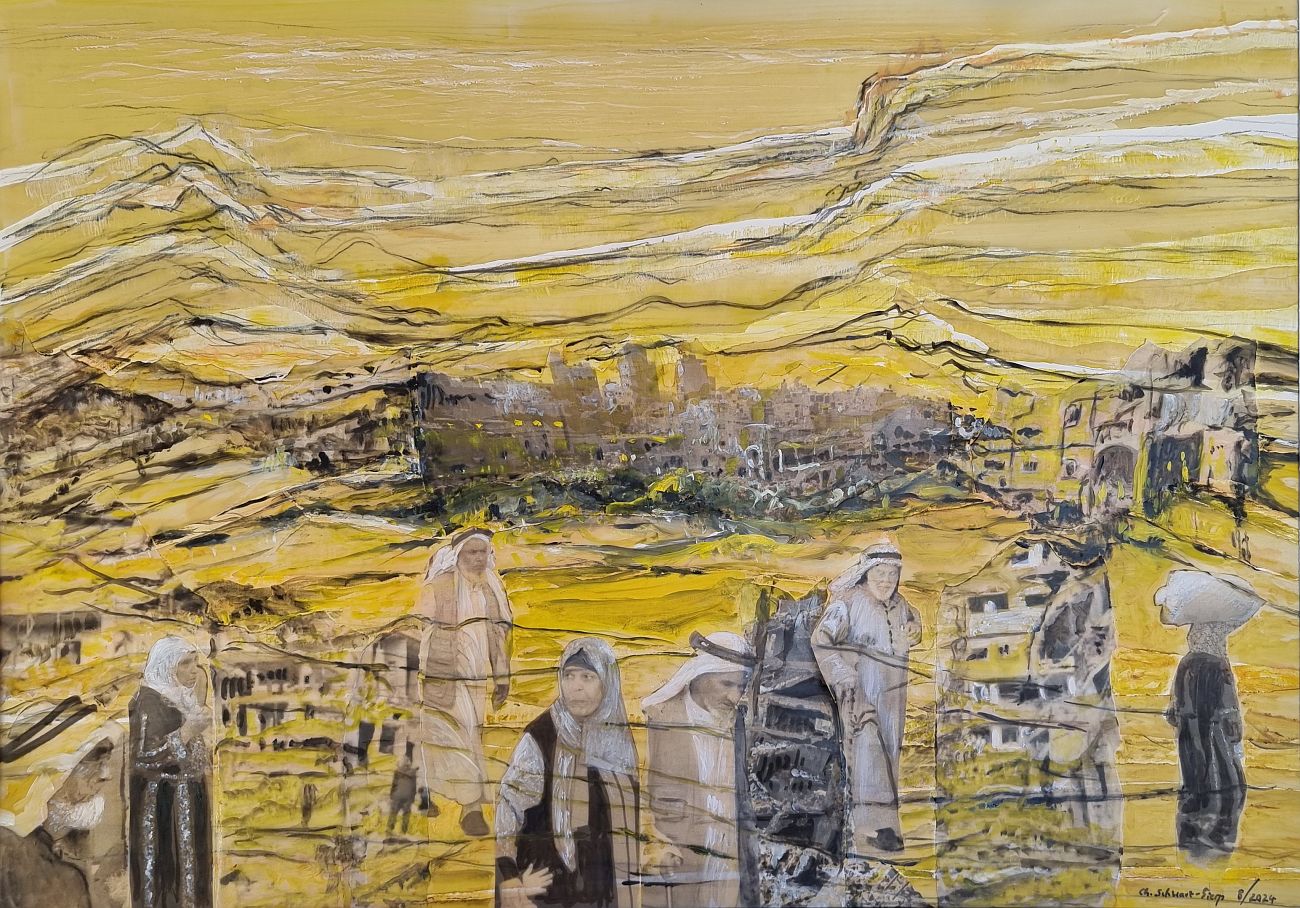 2024; Nach Jerusalem...; 90 x 60 cm; Transparentpapier, Karton, Ölfarbe, ;