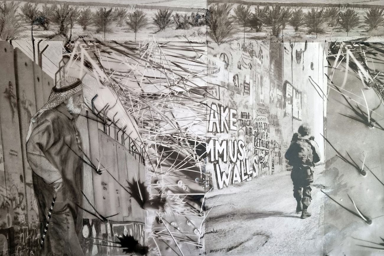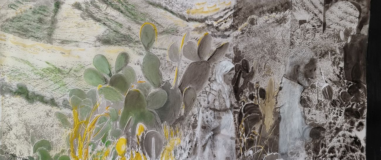 2024; Nach Jerusalem...; 90 x 60 cm; Transparentpapier, Karton, Ölfarbe, ;